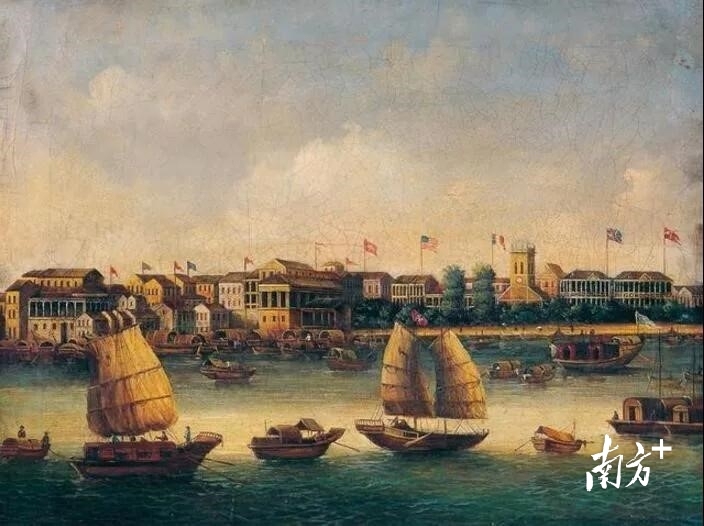 西方油画中的广州十三行。图源广州文化之窗