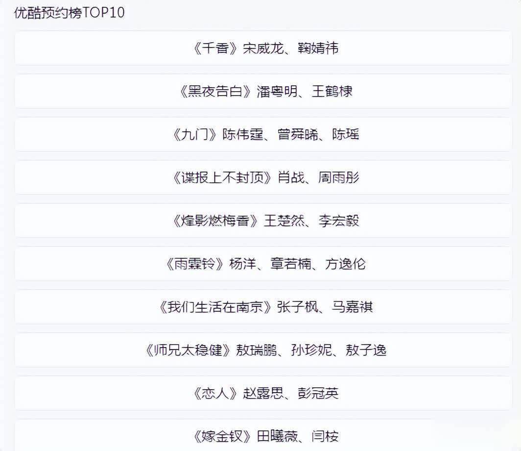 小编瞅见了爱优腾待播剧的TOP10,全都是佳作呢,不晓得小伙伴们钟情哪部剧呀?爱奇艺期待榜TOP10里,任嘉伦的《佳偶天成》位居榜首;张凌赫、王楚然的《这一秒过火》排第二,杨紫的《家业》位列第三;在优酷预约榜TOP10中,宋威龙、鞠婧祎的《千香》拔得头筹,潘粤明、王鹤棣的《黑夜告白》排第二专业网上配资,肖战的《谍报上不封顶》,杨洋的《雨霖铃》也在榜单之中;在腾讯期待榜TOP10里,《佳偶天成》位列第一,《这一秒过火》排第三,《莫离》、《尚公主》、《百花杀》、《长风起》同样在榜,你们期待谁呢?