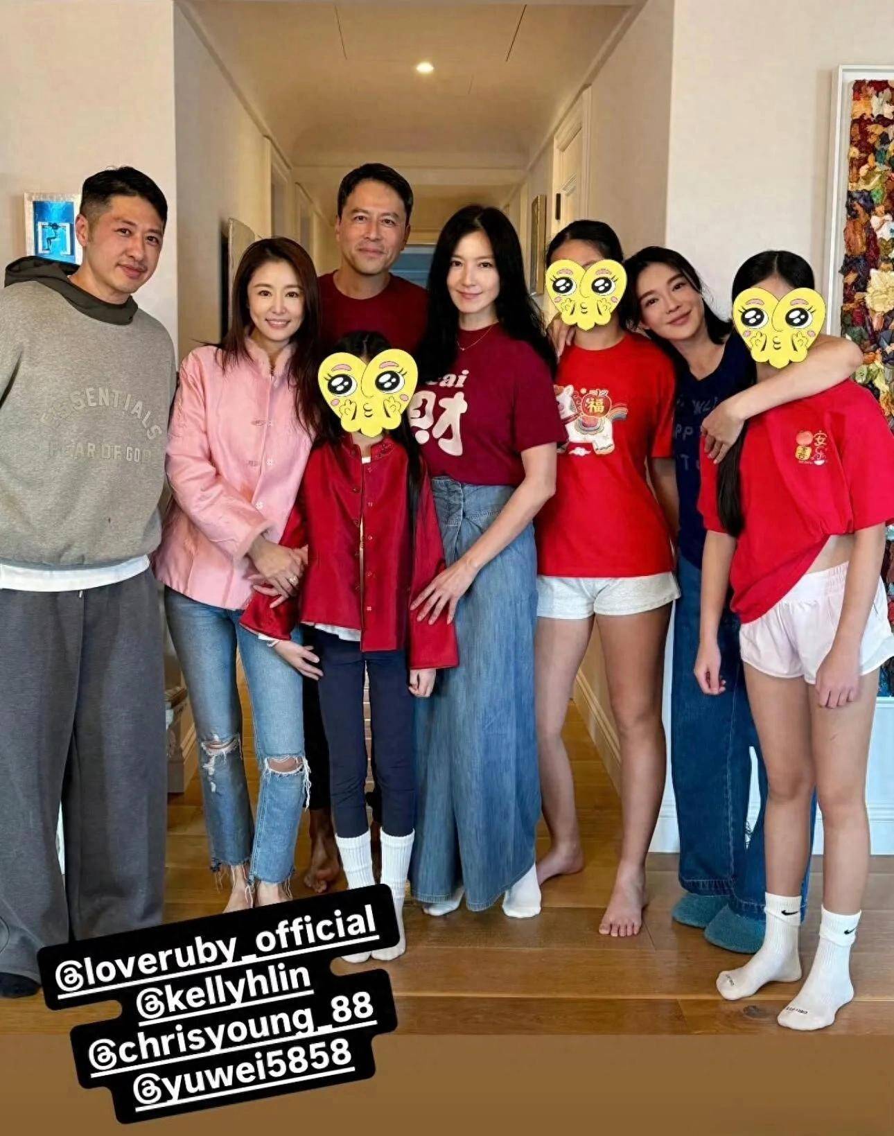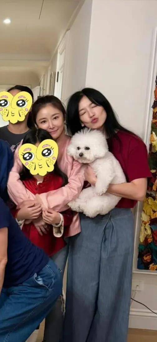 合影时,林心如搂着女儿,林熙蕾抱着爱犬,她俩保养得都极为年轻。这几家人共同享用了团圆饭,彼此关系亲密无间,着实是一场热闹非凡的聚会。